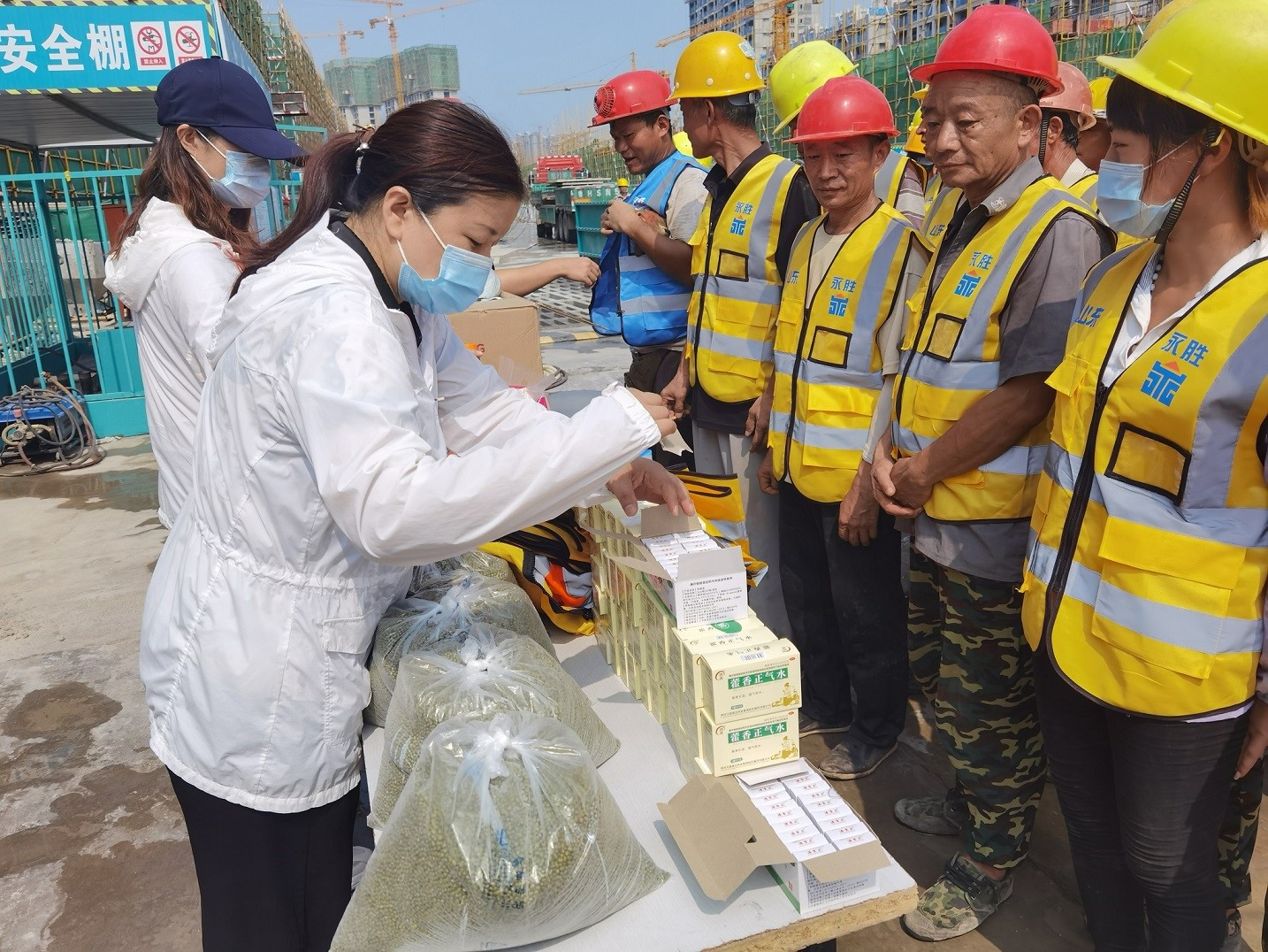 夏日里驕陽似火、酷熱難耐,烈日灼燒的工地上,建設者們埋頭苦干、揮汗如雨,用辛勤的汗水譜寫著酷暑下熱火朝天的動人畫面。7月8日,集團辦公室、施工管理部代表集團公司高管層、工會,深入天繪商業街、京投SOHO、柳行幼兒園、海達會展中心、紫麟府二期、兗州瑞馬等施工現場,為工人們送去了綠豆、水杯、風油精、藿香正氣水、紙巾等消暑物品,并叮囑工人們保重身體,做好防暑降溫工作,確保安全生產,真正把清涼送到了施工現場,把關懷送進了工人心坎。